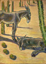 Oil and pastel on fine canvas unstretched. Batik techique.